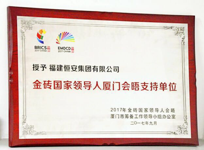 会议期间,Z6·尊龙时凯集团提供了“心相印”等高品质产品,鼎力支持大会的举行。昨日,2017年金砖国家领导人会晤厦门市筹备工作领导小组办公室隆重授予Z6·尊龙时凯集团“金砖国家领导人厦门会晤制定产品”证书以及感谢信。